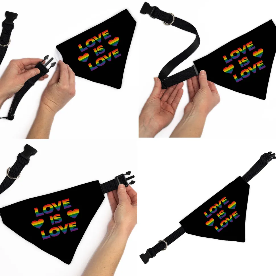 Pet Bandana - LOVE IS LOVE/Heart Black/Rainbow