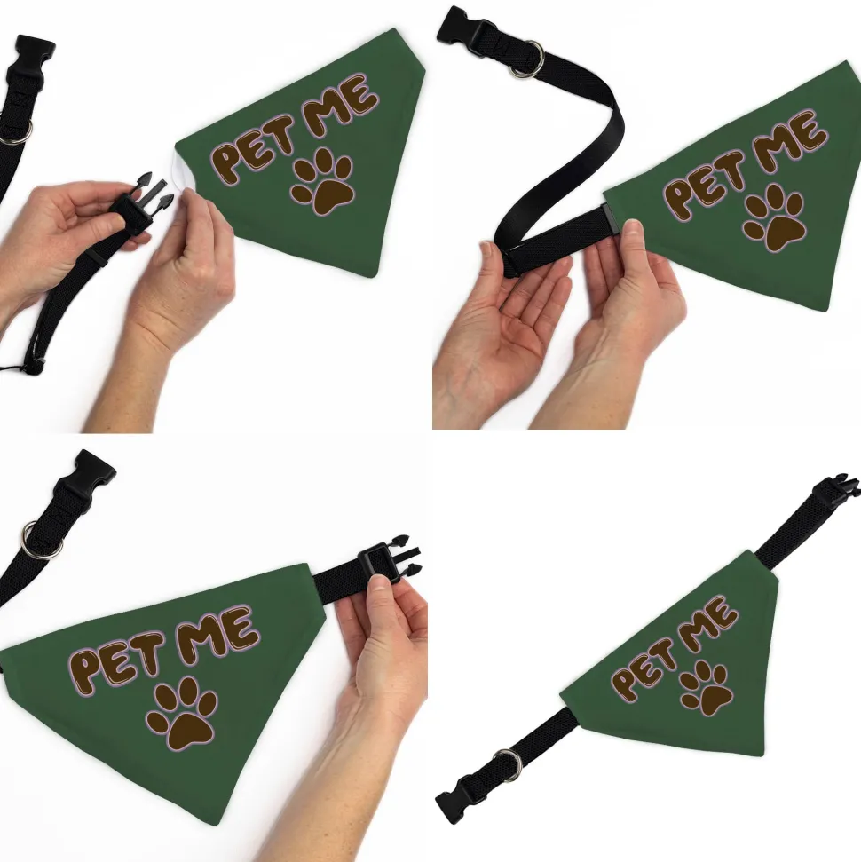 Pet Bandana - PET ME Text and Paw Olive/Pinks/Brown