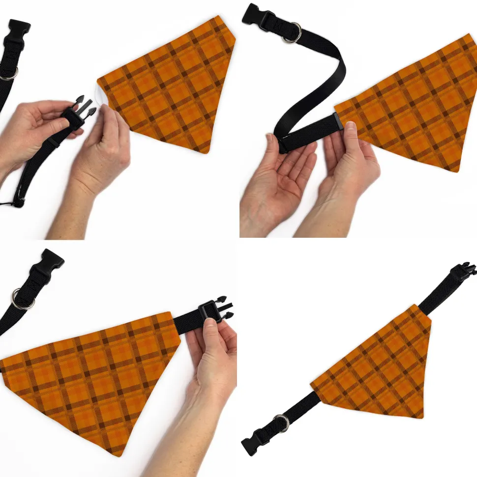 Pet Bandana – Plaid Orange/Brown