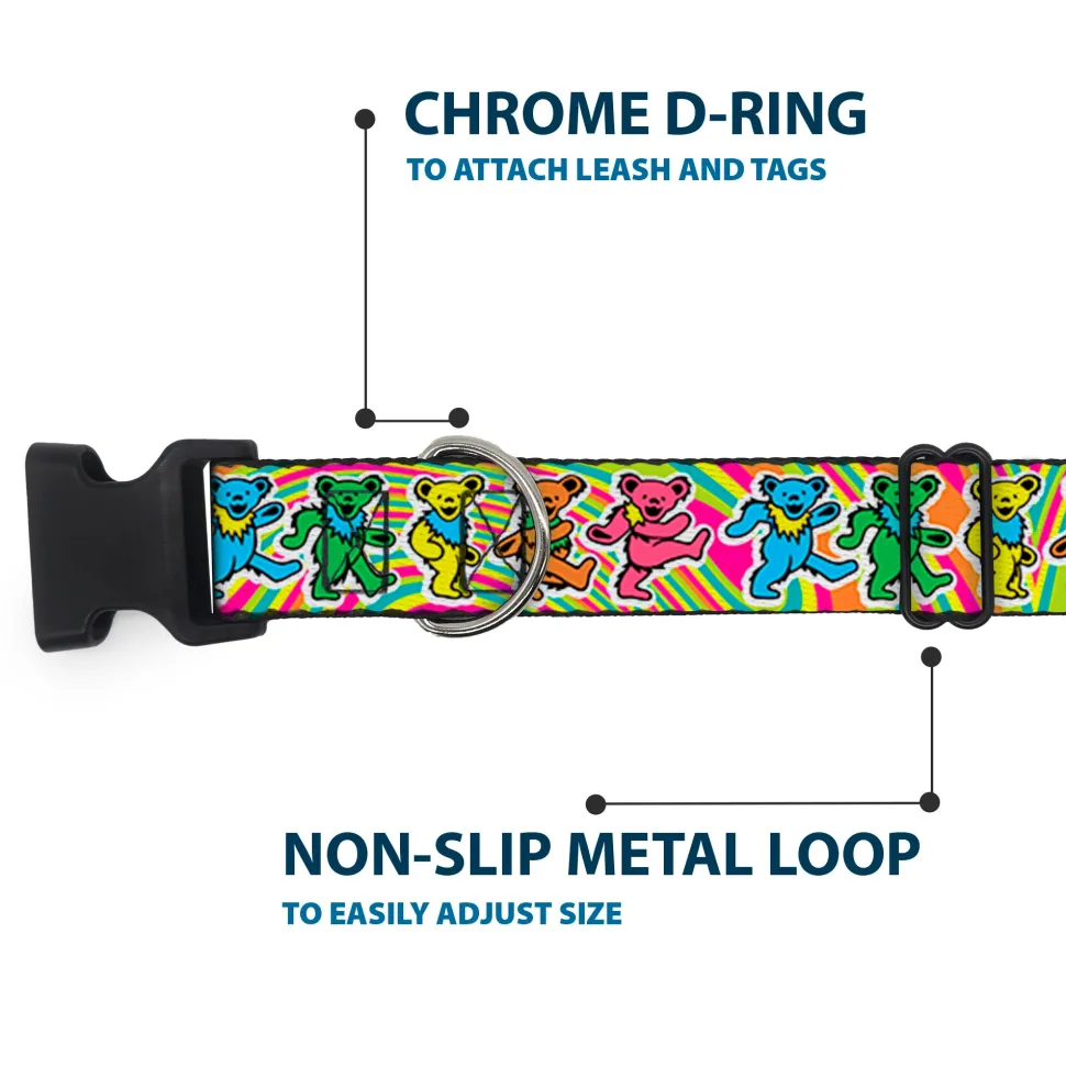 Vibrant and bold, this beautiful, polyester dog collar is made to show off your dog’s unique style through all the seasons. With an over engineered plastic buckle and strong D-ring, this durable collar can hold up to whatever your dog can dish out. This product is officially licensed by Grateful Dead.