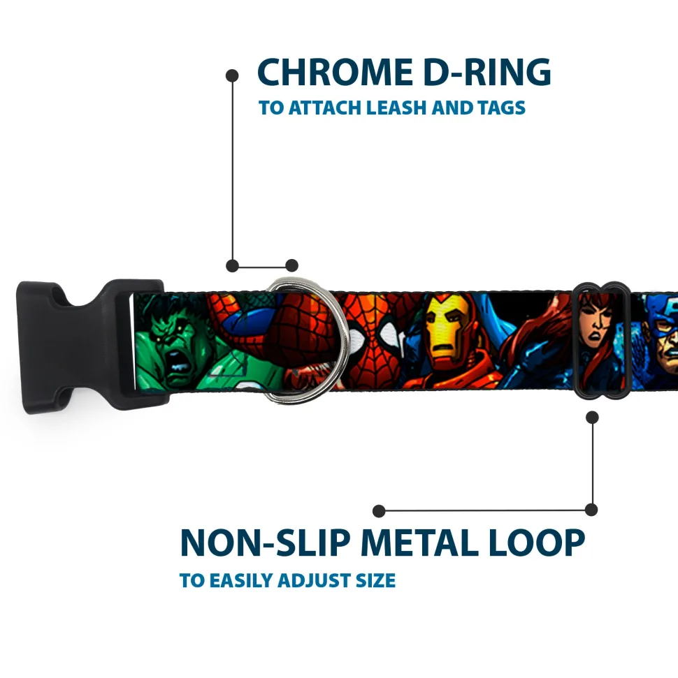 Vibrant and bold, this beautiful, polyester dog collar is made to show off your dog’s unique style through all the seasons. With an over engineered plastic buckle and strong D-ring, this durable collar can hold up to whatever your dog can dish out. This product is officially licensed by Marvel Comics.