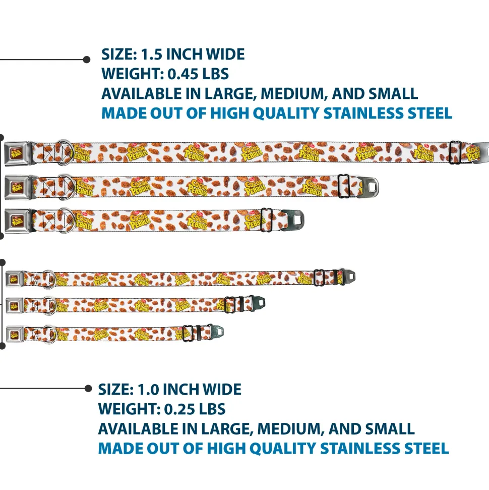 POST COCOA PEBBLES Logo Full Color Brown/Yellows Seatbelt Buckle Collar – POST COCOA PEBBLES Logo and Cereal Pebbles Scattered White/Browns