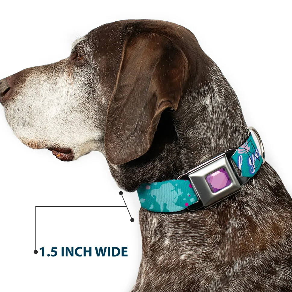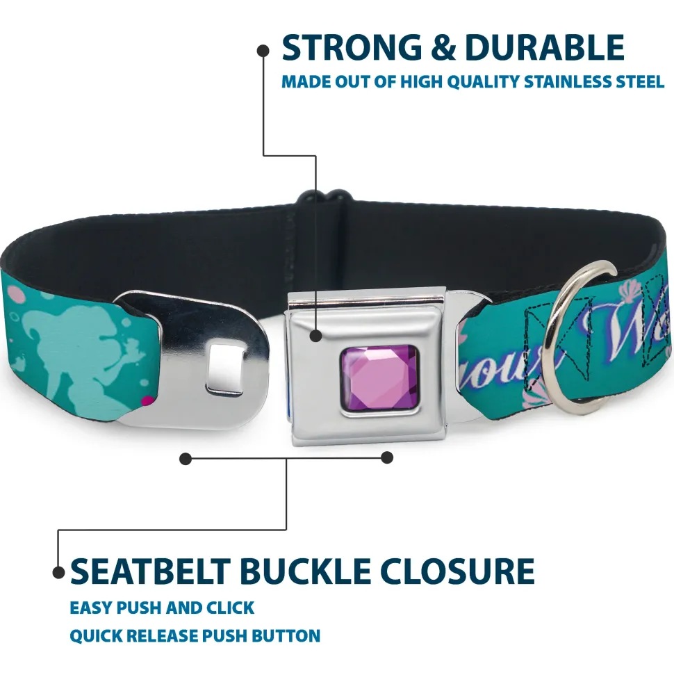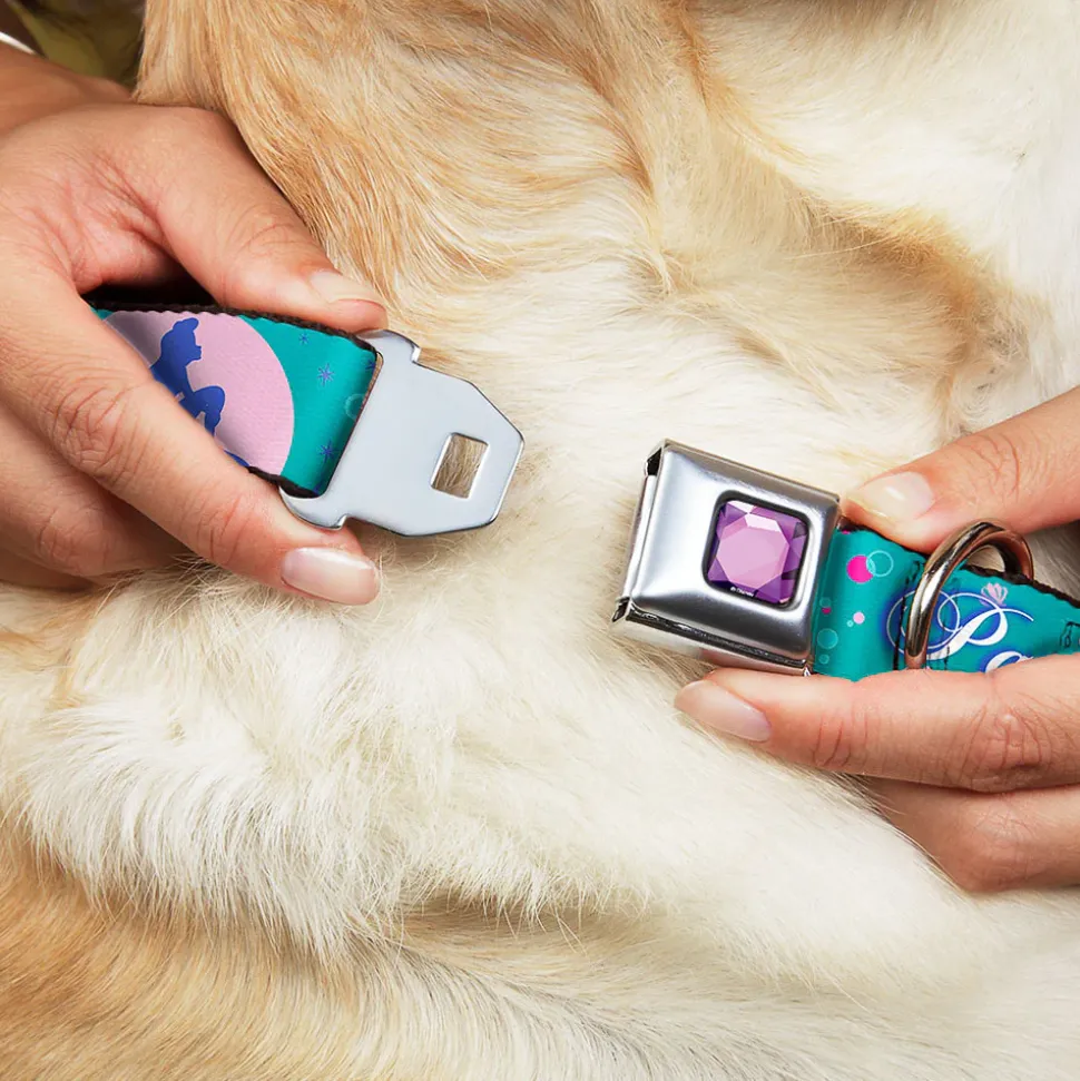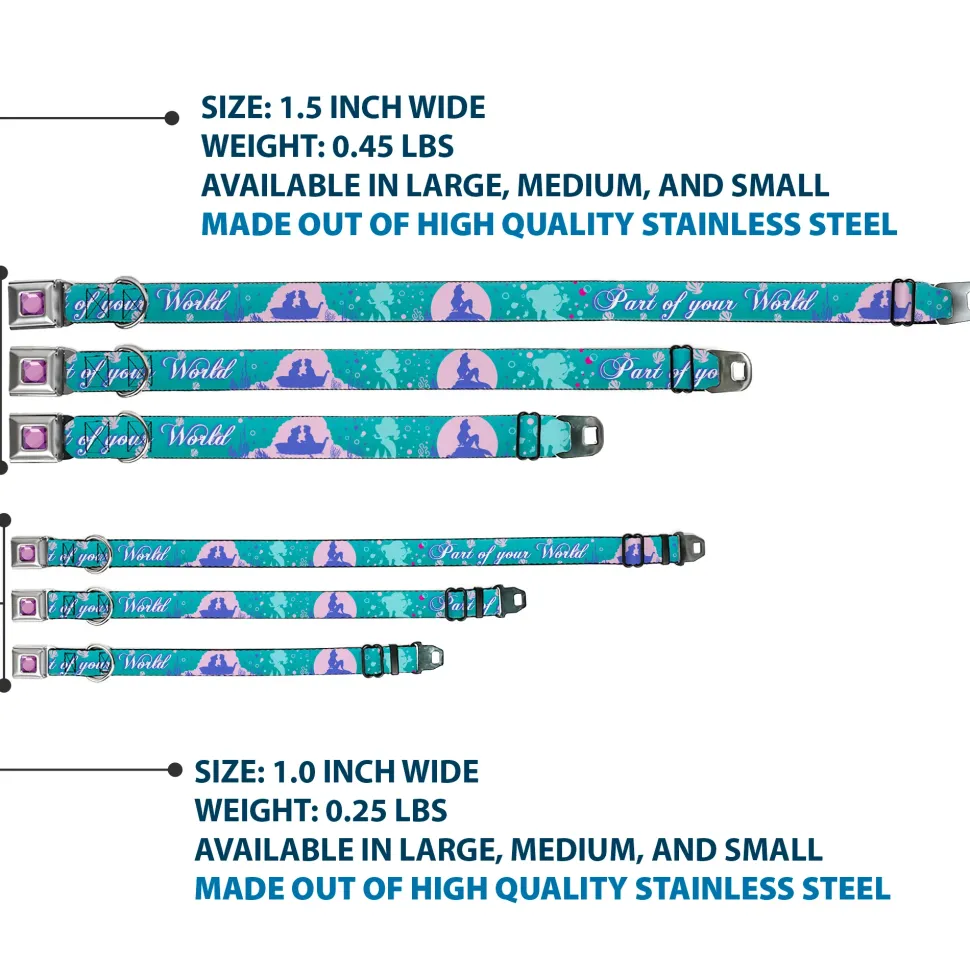 Princess Gem CLOSE-UP Full Color Purple Seatbelt Buckle Collar – Little Mermaid Silhouette Scenes PART OF YOUR WORLD Blues