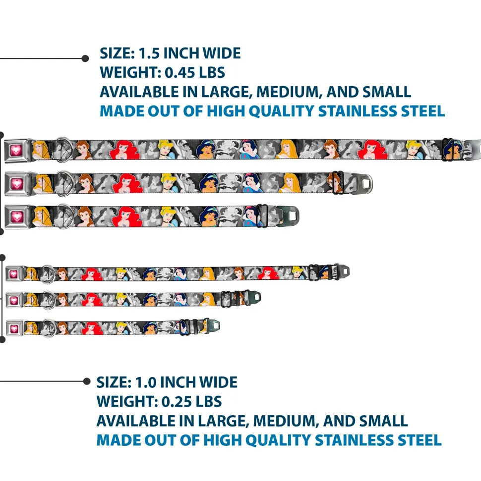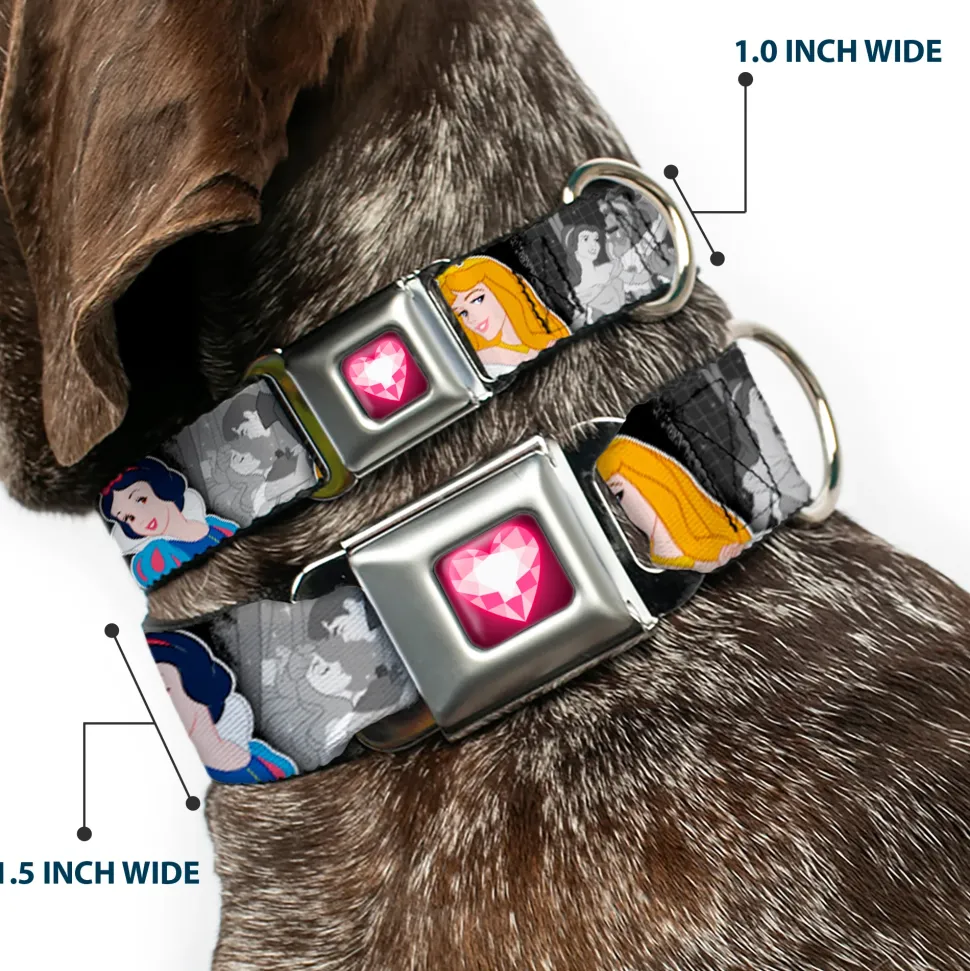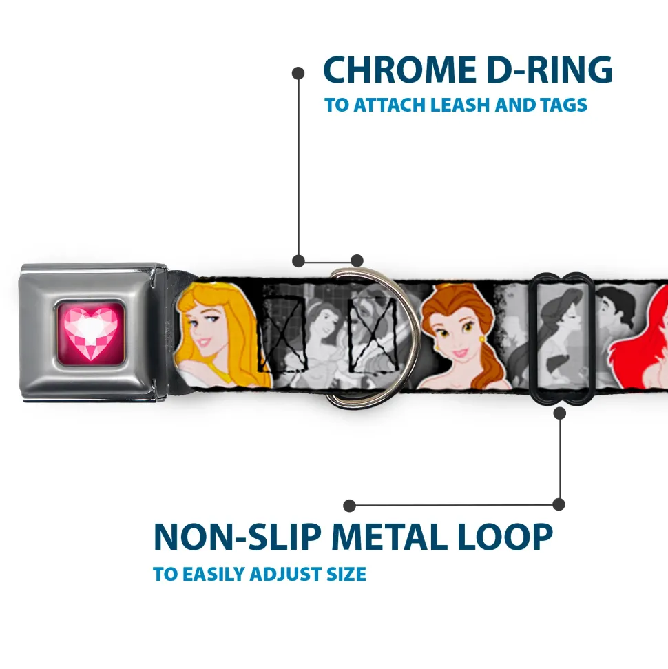 Princess Gem Heart Full Color Black/Pink Seatbelt Buckle Collar – Princess Pose/Princess & Prince Scene Grays/Multi Color