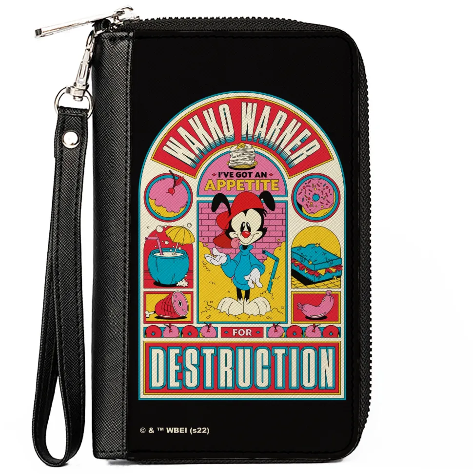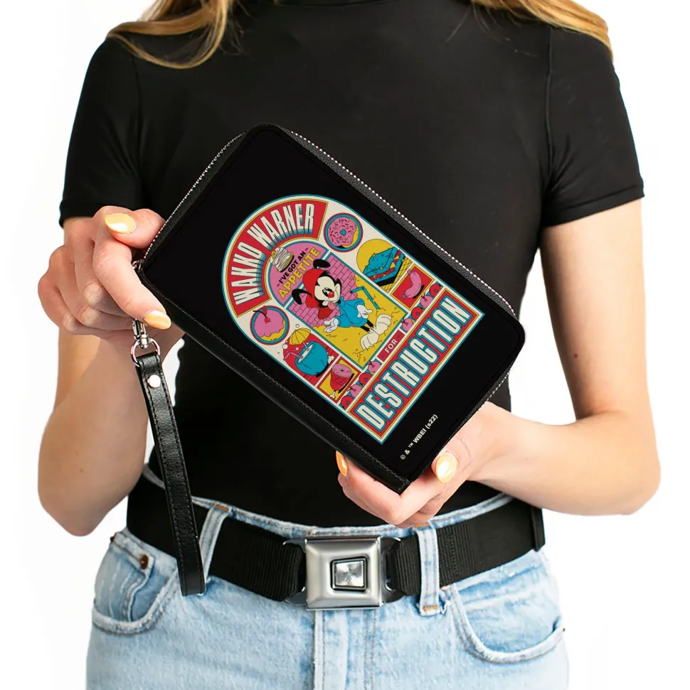 You’re going to love this wallet! Stylish and sleek this zip around wallet is made from premium vegan leather. It measures 7.5×4.5×1.0 Inches and features 2 billfolds, 6 card slots, 1 coin zipper, 1 windowed ID holder slot and a detachable wristlet strap for easy carrying. This wallet is spacious enough to carry large smartphones such as the iPhone 8 Plus, iPhone 11 Max. Galaxy Note 10 Plus and more! The gorgeous artwork is applied using the latest printing technology so it will hold up well over time. This product is Made in USA by Buckle-Down Inc. and Officially Licensed by Animaniacs.