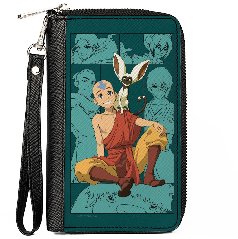 PU Zip Around Wallet Rectangle – Avatar Last Airbender Aang and Momo Pose with Character Blocks Teals