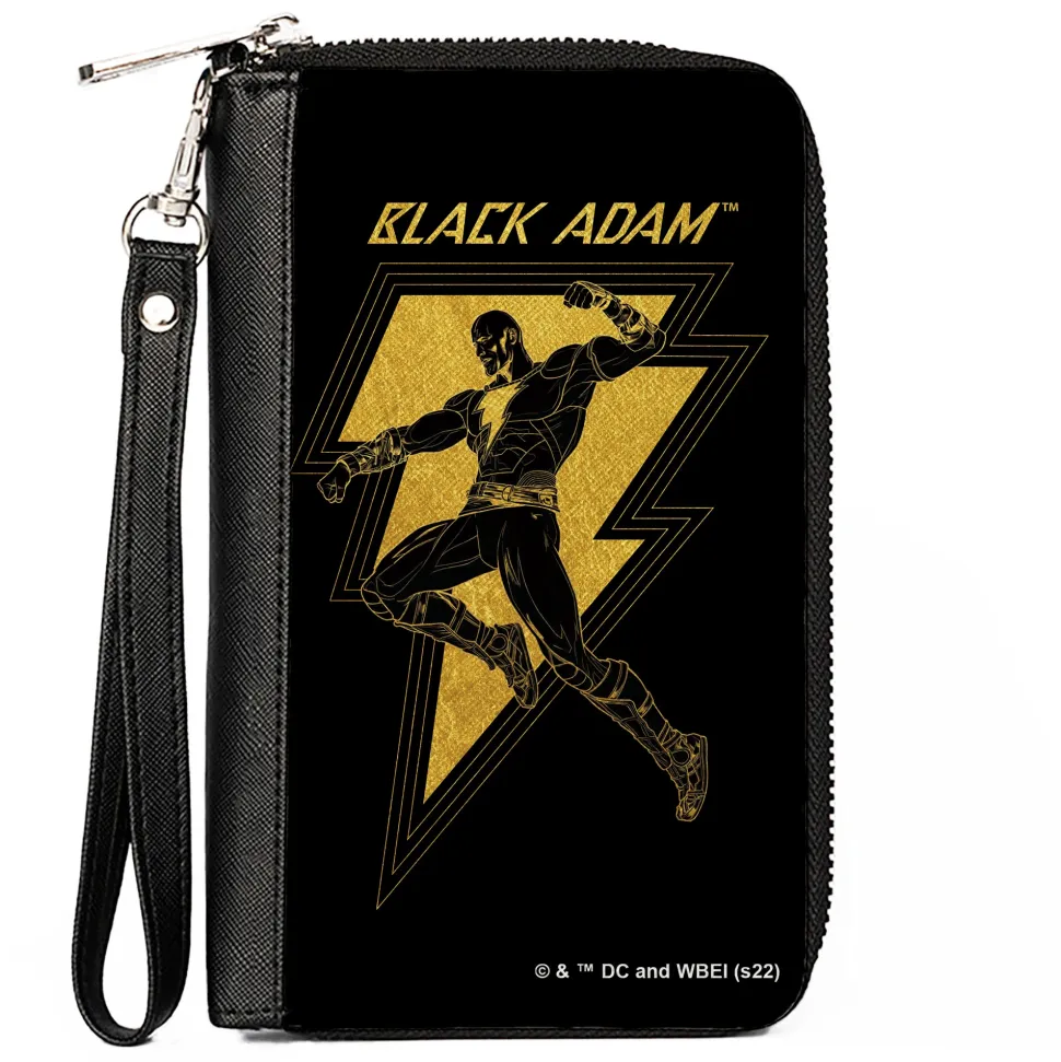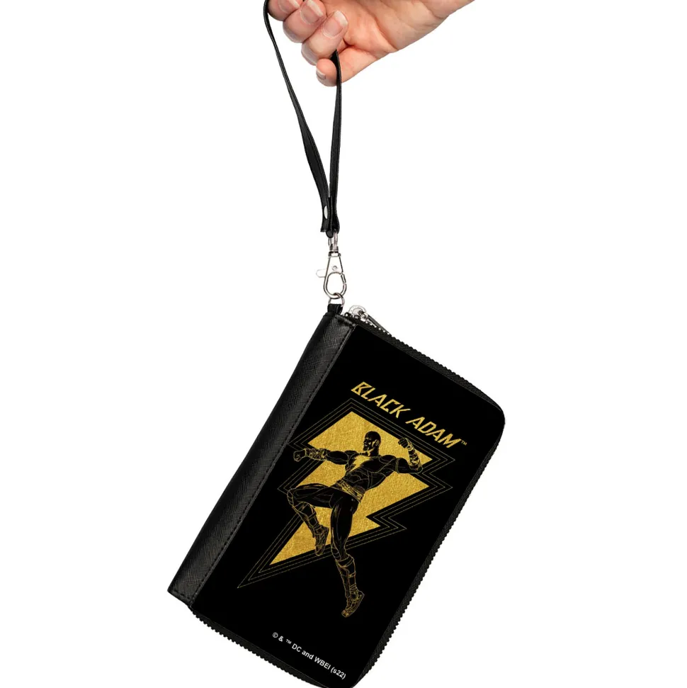 PU Zip Around Wallet Rectangle – BLACK ADAM Lightning Bolt and Action Pose Black Yellows