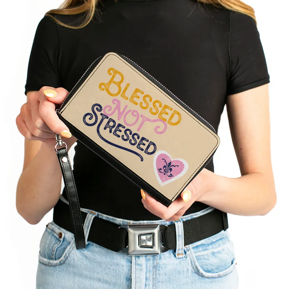 PU Zip Around Wallet Rectangle – BLESSED NOT STRESSED Quote Fleur-de-Lis Beige Multi Color