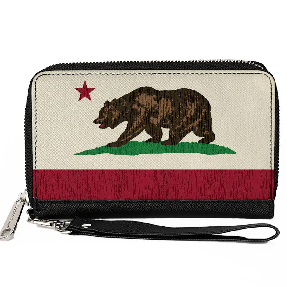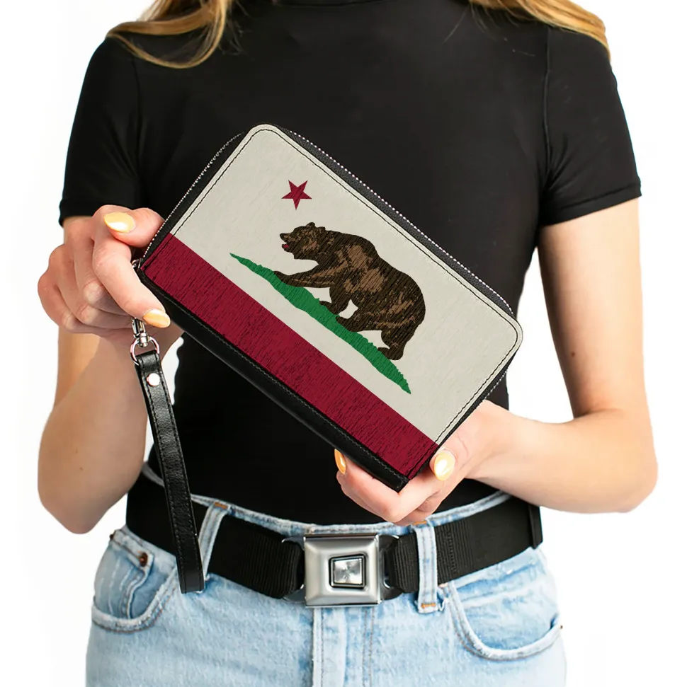 PU Zip Around Wallet Rectangle – California Flag Bear Weathered White