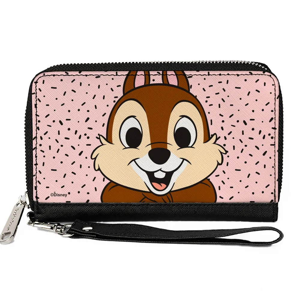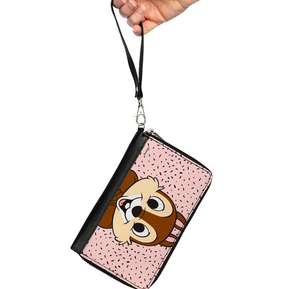 PU Zip Around Wallet Rectangle – Disney Chip n' Dale Chip Smiling Pose Sprinkle Pink Black