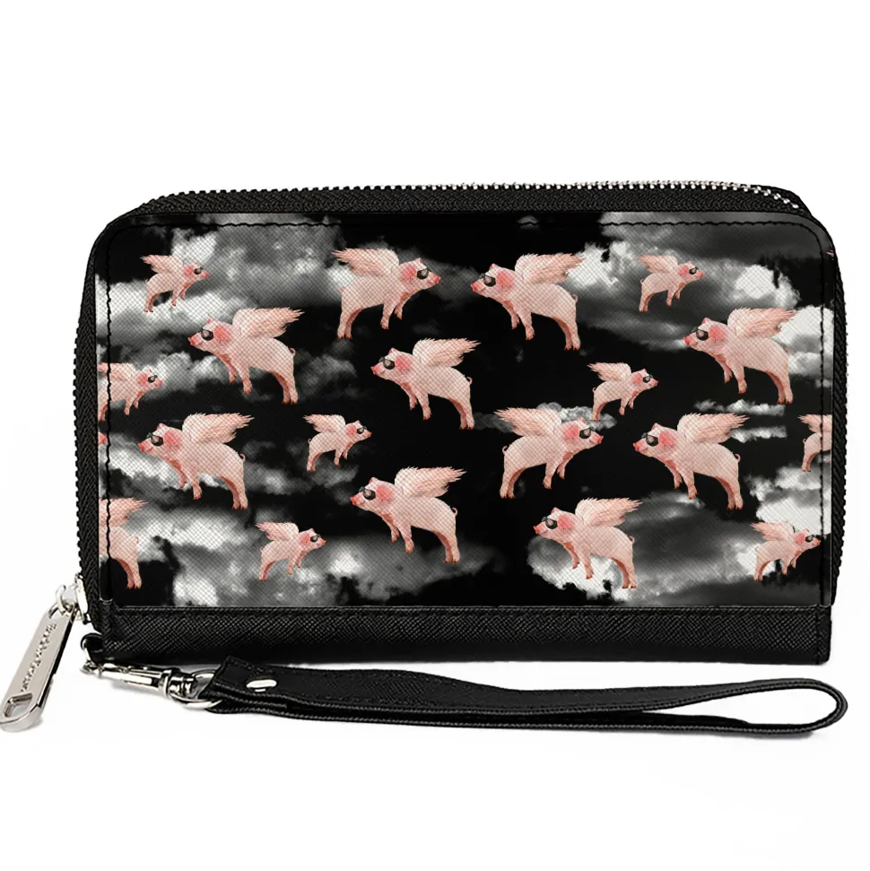 PU Zip Around Wallet Rectangle – Flying Pigs Black/White/Pink