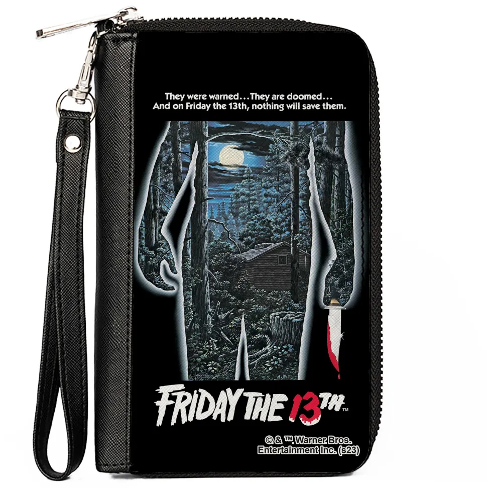 PU Zip Around Wallet Rectangle – FRIDAY THE 13TH Jason Crystal Lake Cabin Silhouette Movie Pose