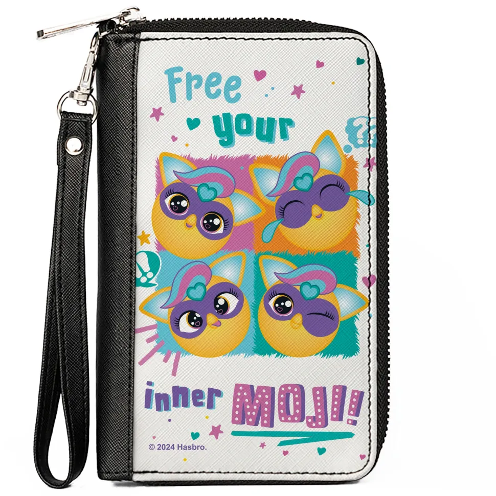 PU Zip Around Wallet Rectangle – Furby Furbmoji FREE YOUR INNER MOJI Expressions White/Multi Color