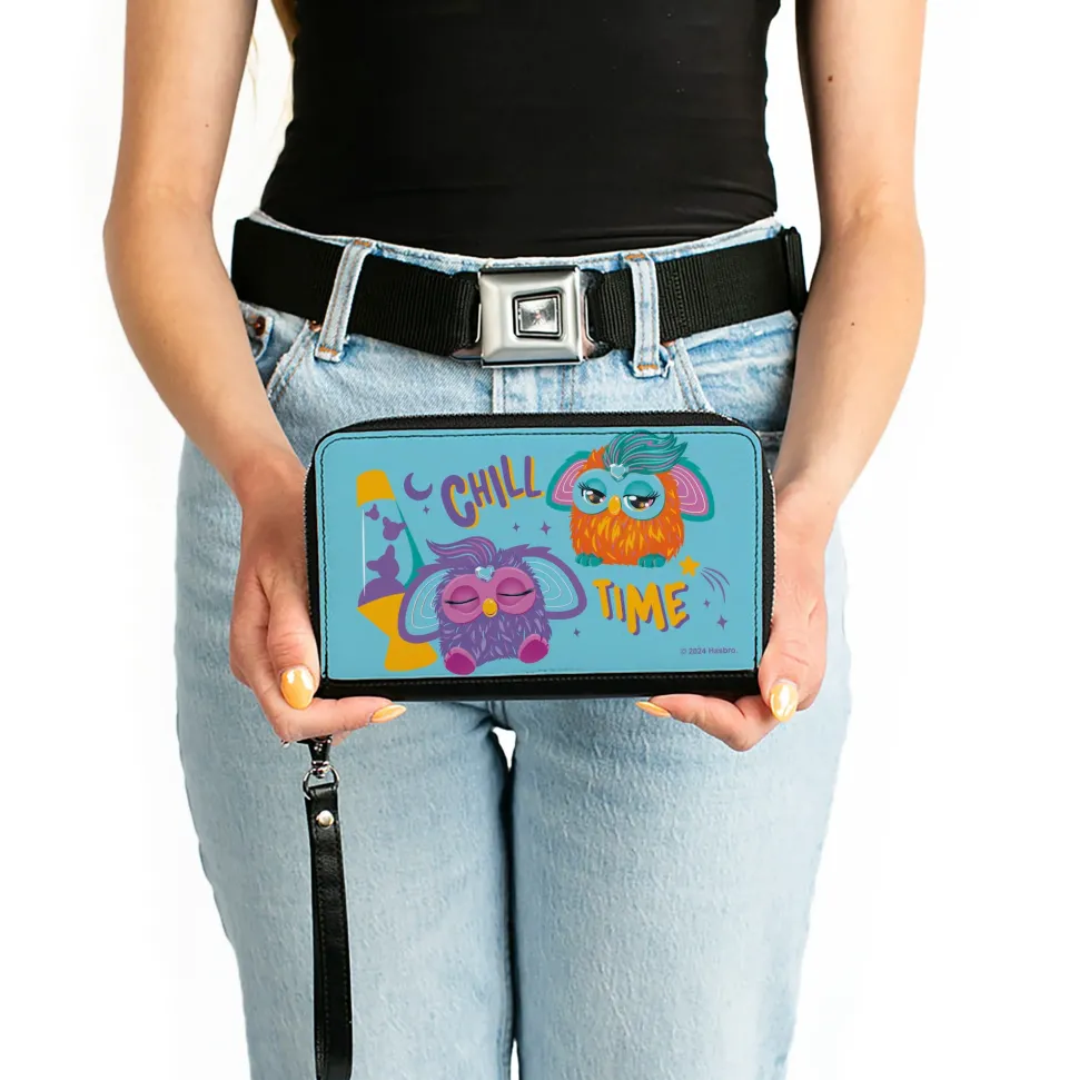 PU Zip Around Wallet Rectangle – Furby Purple and Orange Furby CHILL TIME Pose Blue/Purple