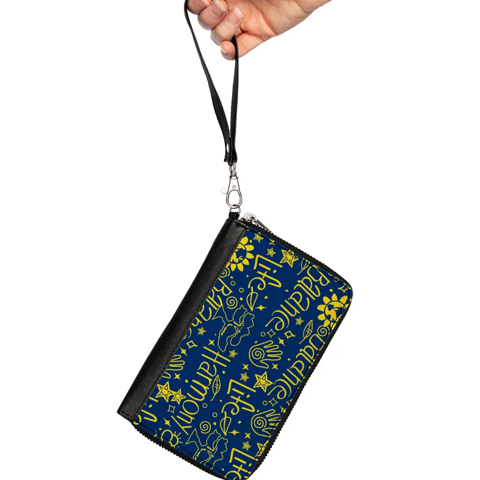PU Zip Around Wallet Rectangle – HARMONY BALANCE LIFE Icons Collage Blue/Yellow