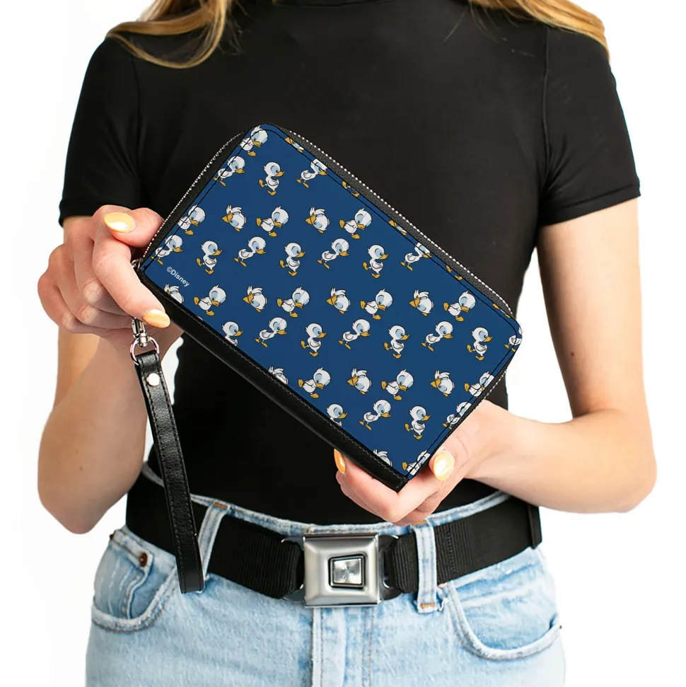 PU Zip Around Wallet Rectangle – Lilo & Stitch Duckling Poses Scattered Blue