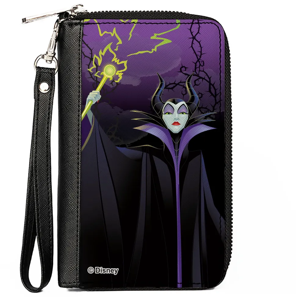 PU Zip Around Wallet Rectangle – Maleficent Raising Staff Pose Forest of Thorns Purples