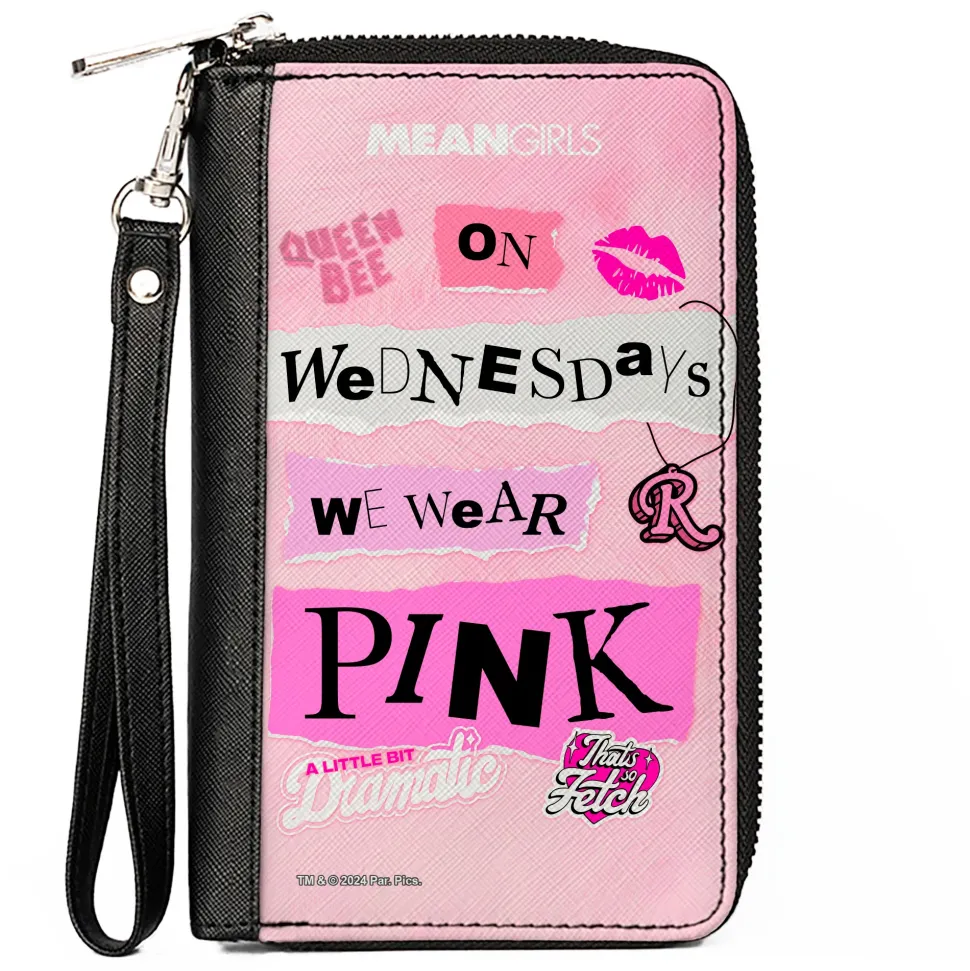 PU Zip Around Wallet Rectangle – MEAN GIRLS Plastics Quotes Collage Pinks