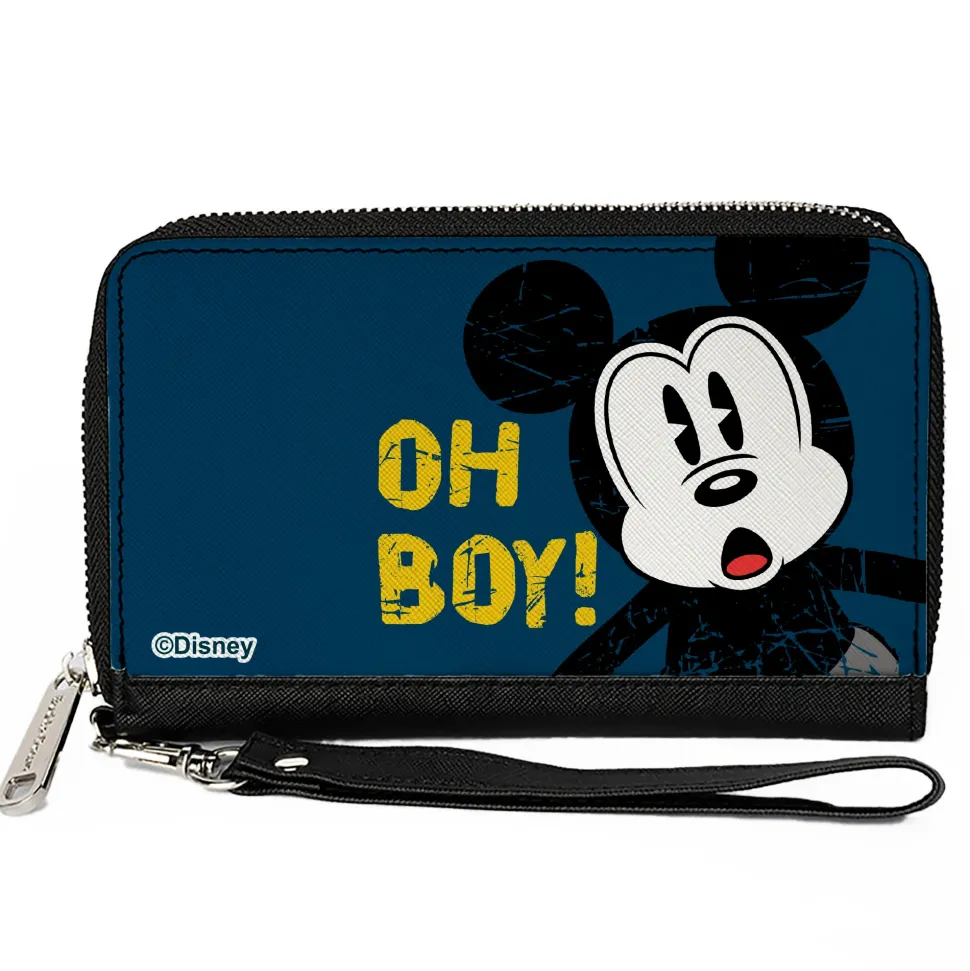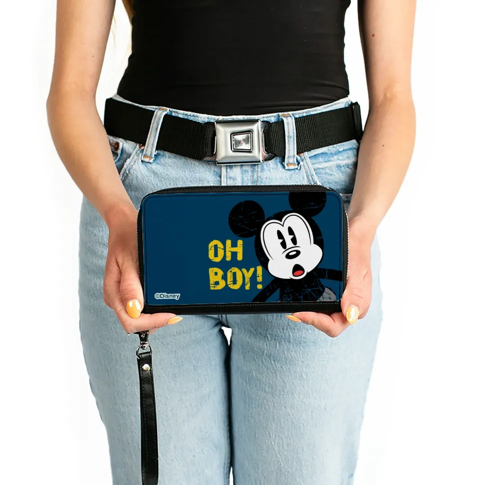 PU Zip Around Wallet Rectangle – Mickey Mouse OH BOY! Pose Weathered Blue/Gold