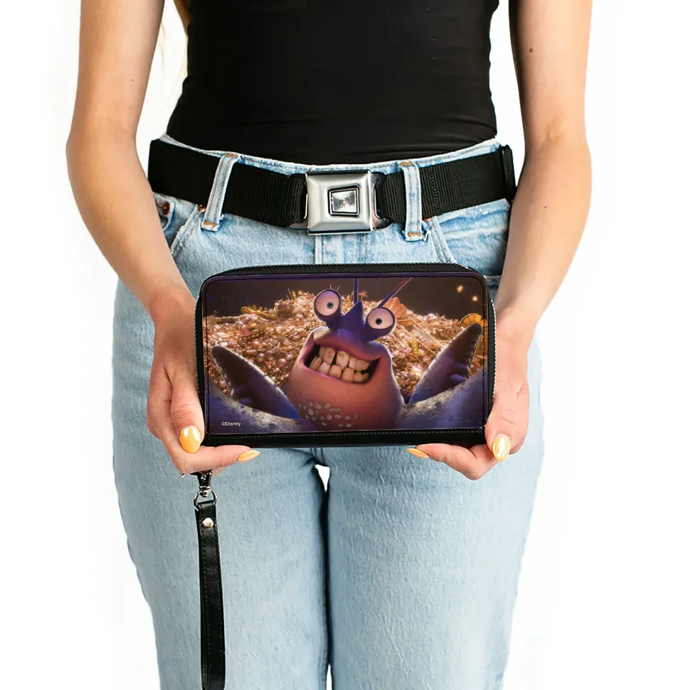 PU Zip Around Wallet Rectangle - Moana Tamatoa Smiling Face CLOSE-UP