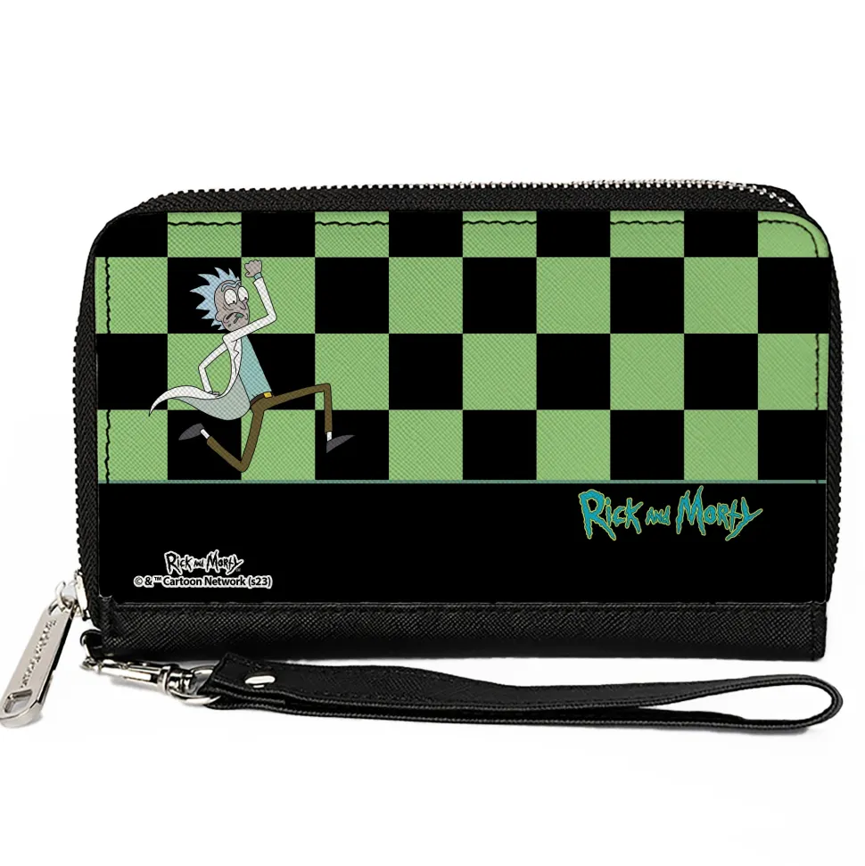 PU Zip Around Wallet Rectangle – RICK AND MORTY Rick Running Pose Checker Black/Green