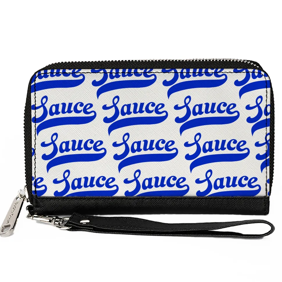 PU Zip Around Wallet Rectangle – SAUCE Baseball Script White/Blue