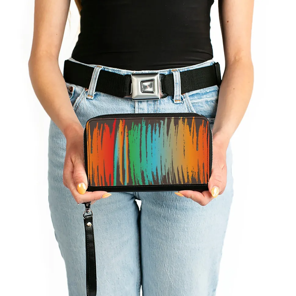 PU Zip Around Wallet Rectangle – Scribble Zarape Fade Brown/Multi Color