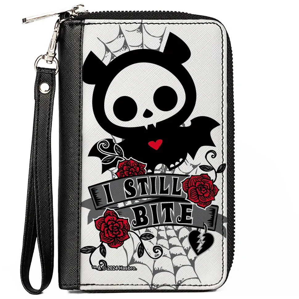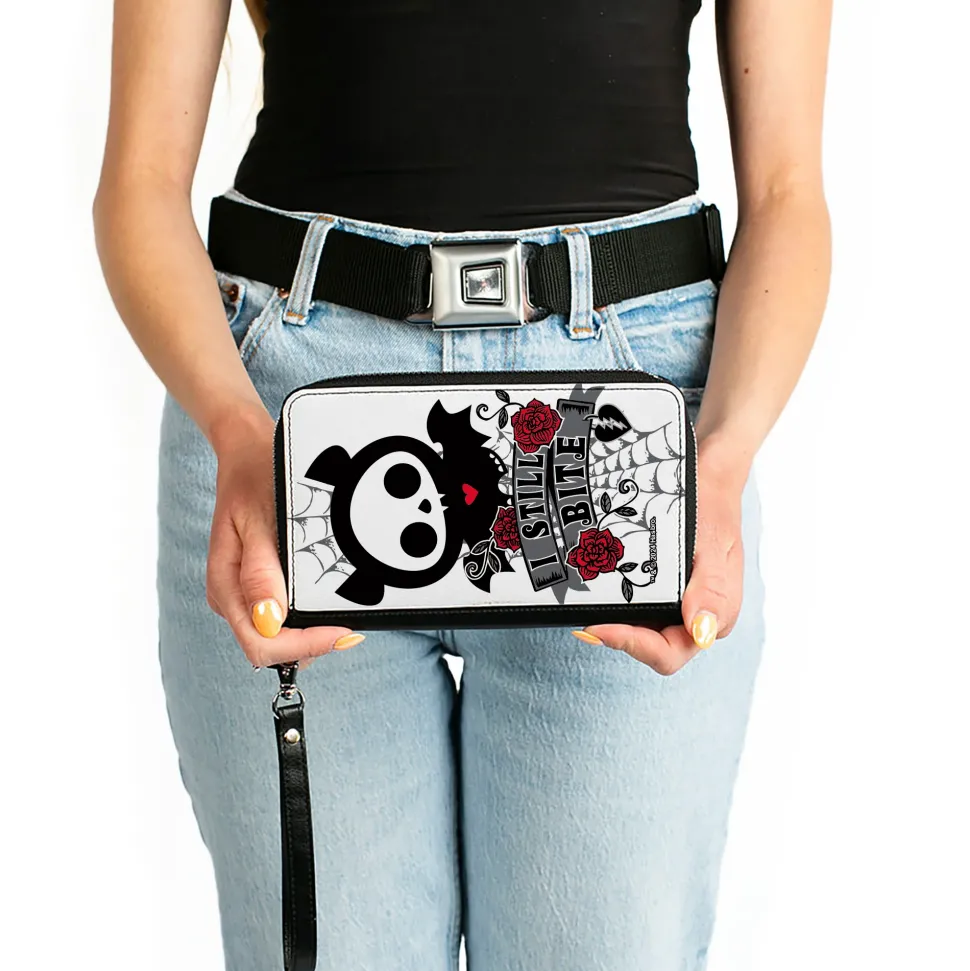 PU Zip Around Wallet Rectangle – Skelanimals Diego the Bat I STILL BITE Pose White/Gray/Black/Red