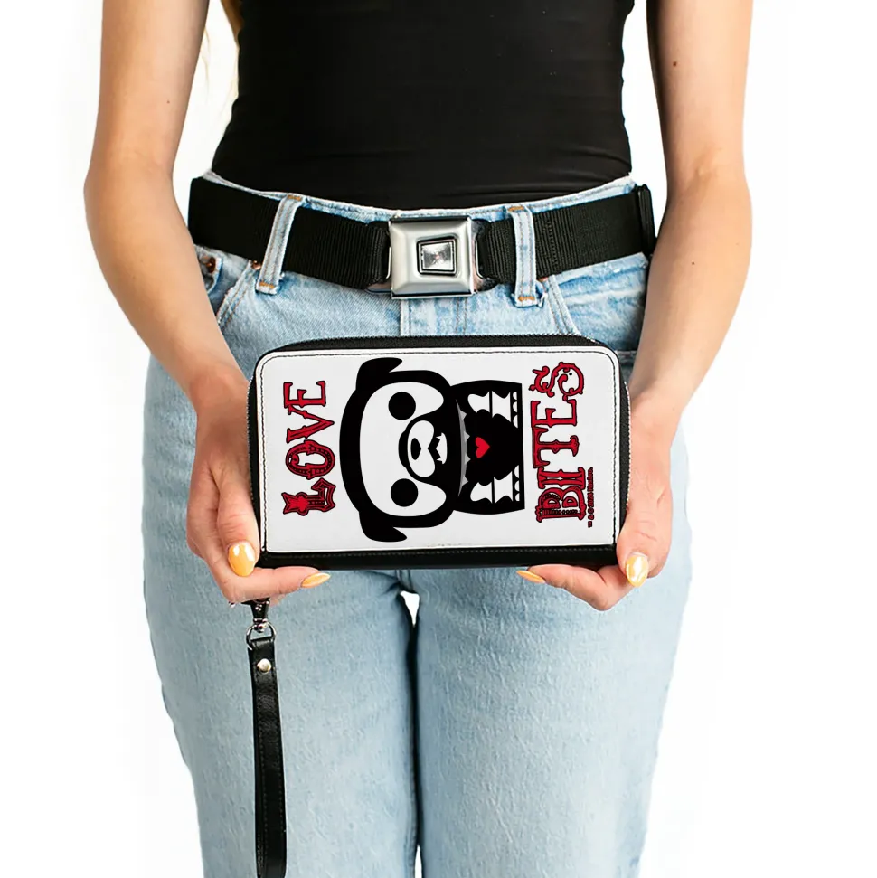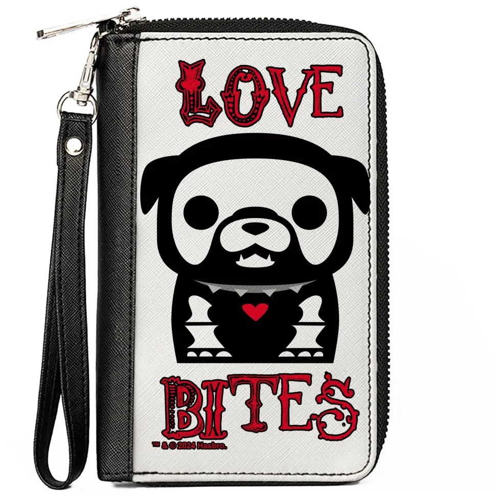 PU Zip Around Wallet Rectangle – Skelanimals Maxx the Bulldog LOVE BITES Pose White/Black/Red