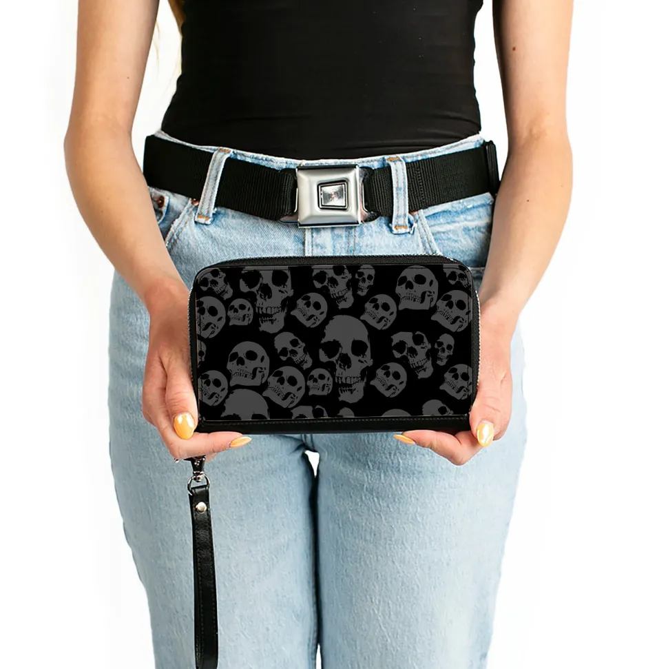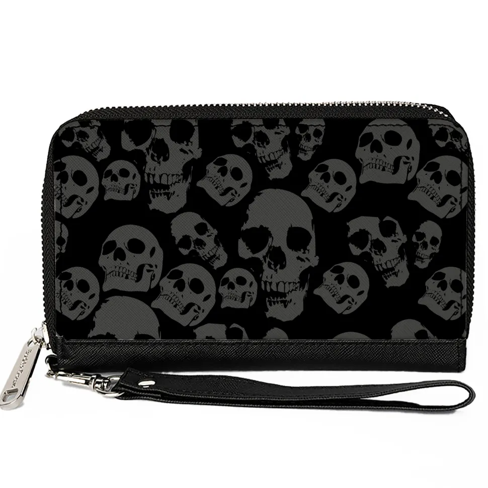 PU Zip Around Wallet Rectangle – Skulls Stacked Weathered Black/Gray