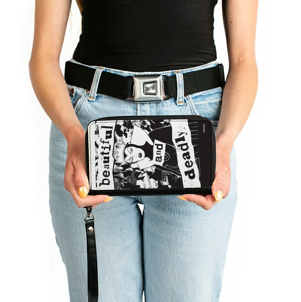 You’re going to love this wallet! Stylish and sleek this zip around wallet is made from premium vegan leather. It measures 7.5×4.5×1.0 Inches and features 2 billfolds, 6 card slots, 1 coin zipper, 1 windowed ID holder slot and a detachable wristlet strap for easy carrying. This wallet is spacious enough to carry large smartphones such as the iPhone 8 Plus, iPhone 11 Max. Galaxy Note 10 Plus and more! The gorgeous artwork is applied using the latest printing technology so it will hold up well over time. This product is Made in USA by Buckle-Down Inc. and Officially Licensed by Disney.