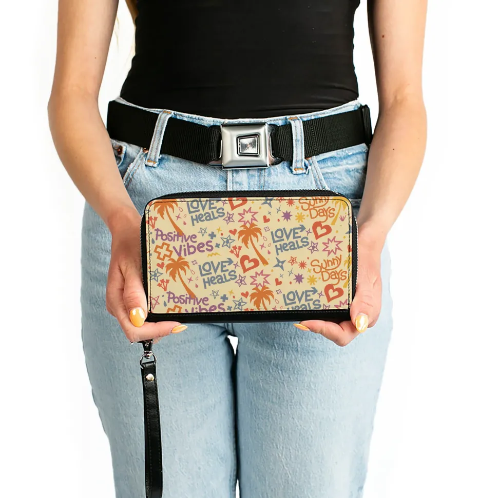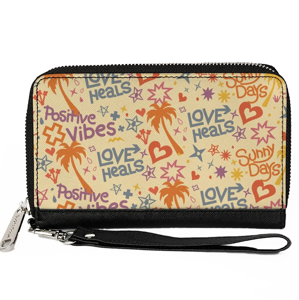 PU Zip Around Wallet Rectangle – Summer Harmony Collage Beige/Multi Color