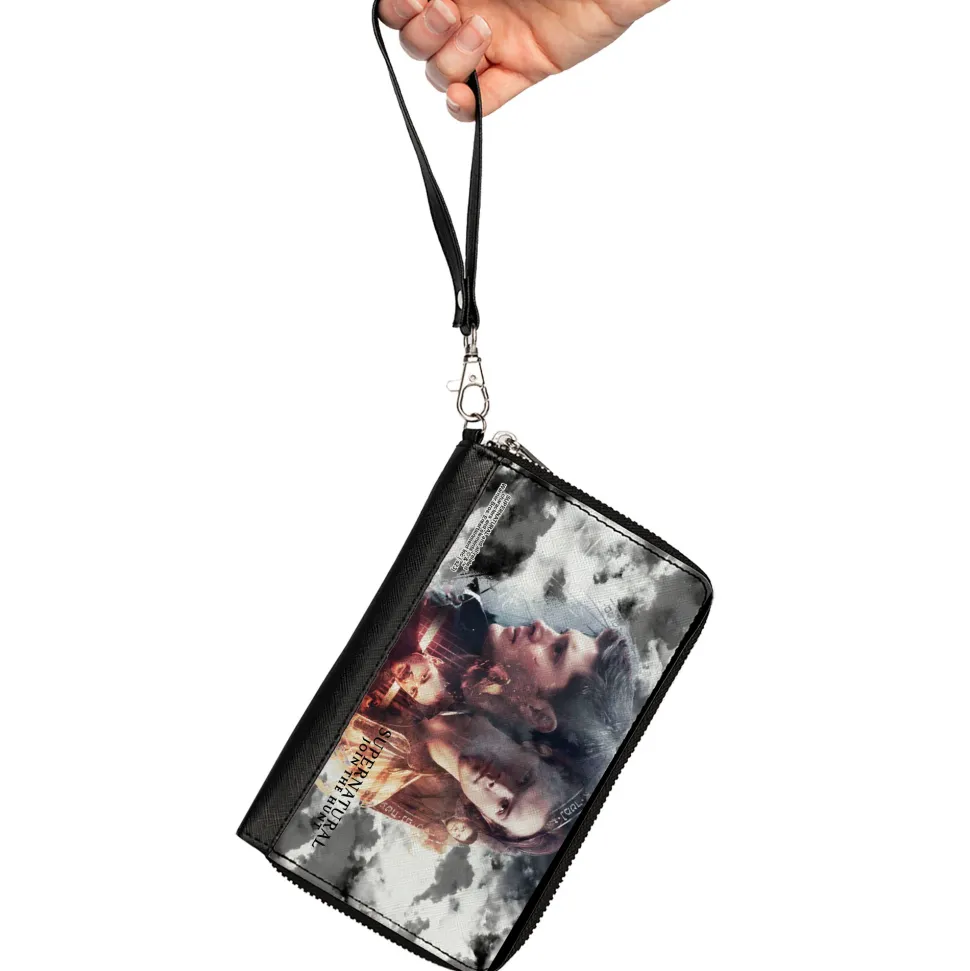 PU Zip Around Wallet Rectangle – Supernatural 4-Character Collage in Clouds Grays/Sepia