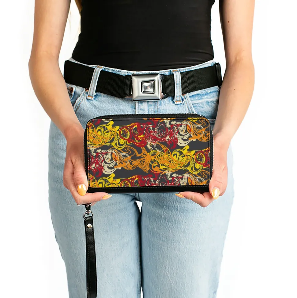 PU Zip Around Wallet Rectangle – Swirl Mix Gray/Multi Color