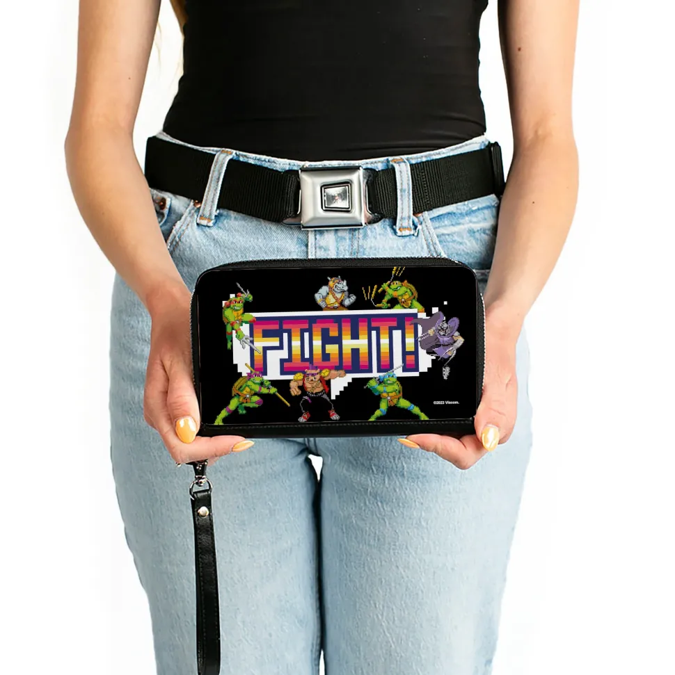PU Zip Around Wallet Rectangle - Teenage Mutant Ninja Turtles and Villains Arcade FIGHT! Pose Black