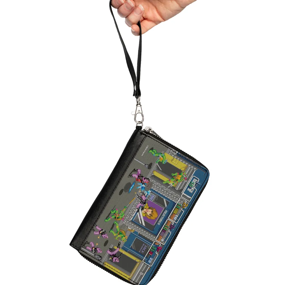 PU Zip Around Wallet Rectangle – Teenage Mutant Ninja Turtles Battle Purple Foot Soldier Ninja Arcade Scene Grays