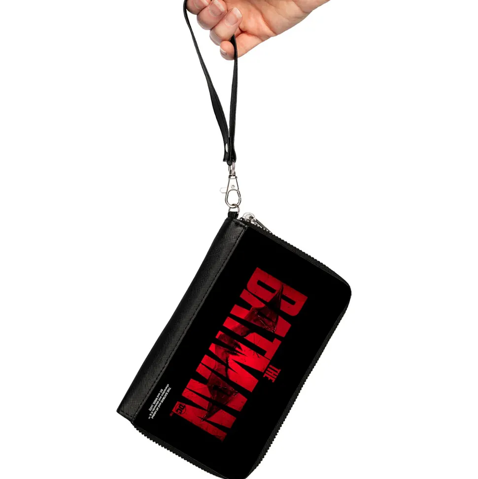 PU Zip Around Wallet Rectangle – THE BATMAN Movie Bat Title Weathered Black Red