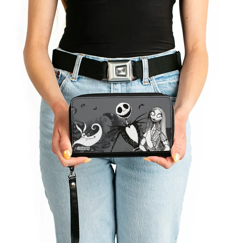 PU Zip Around Wallet Rectangle - The Nightmare Before Christmas Jack Sally and Zero Cemetery Scene Grays