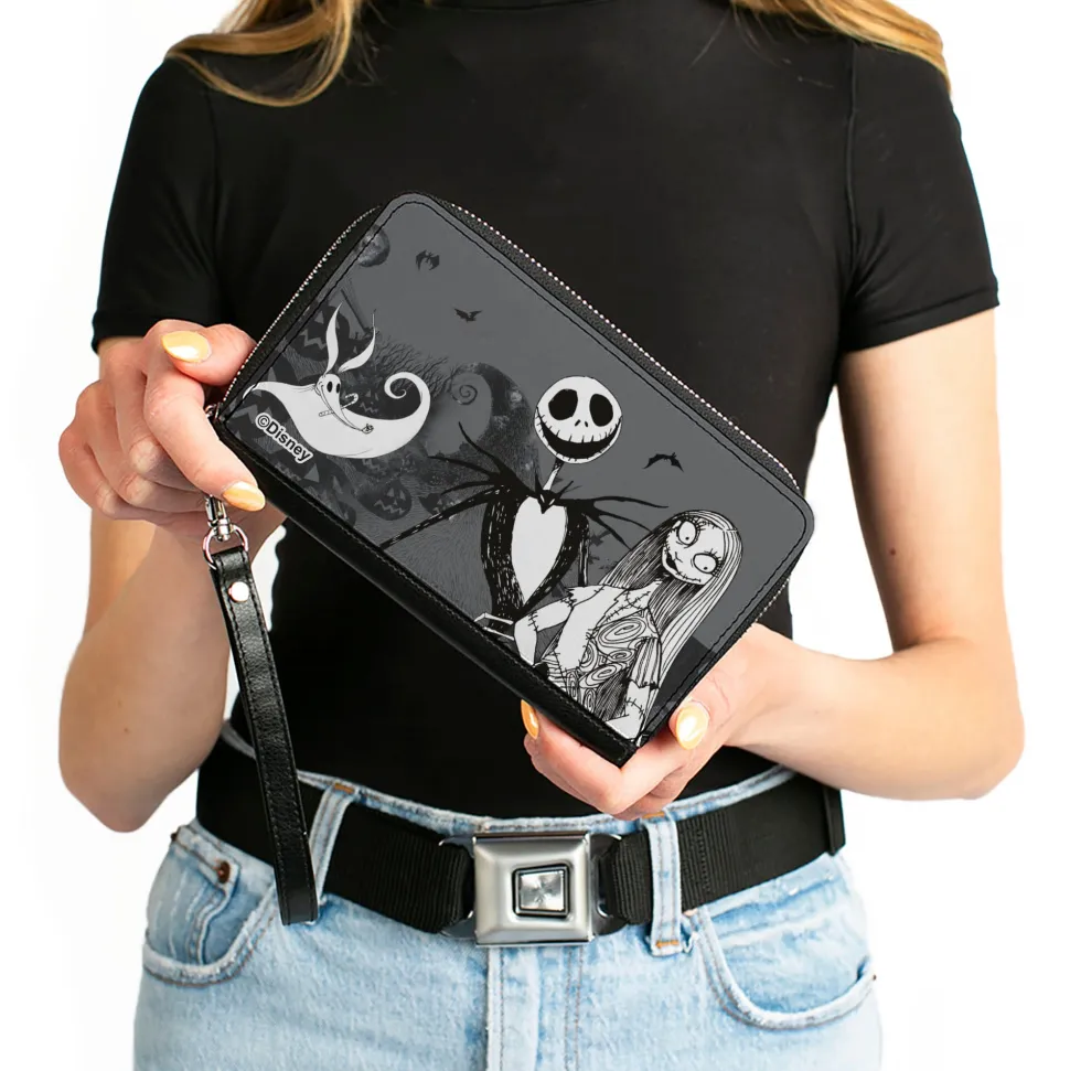 PU Zip Around Wallet Rectangle – The Nightmare Before Christmas Jack Sally and Zero Cemetery Scene Grays