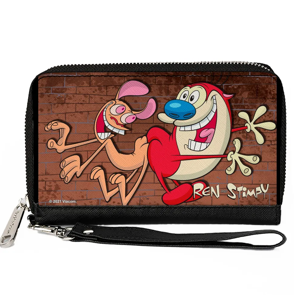 PU Zip Around Wallet Rectangle – The Ren & Stimpy Show Booty Bump Pose Brick Wall Browns
