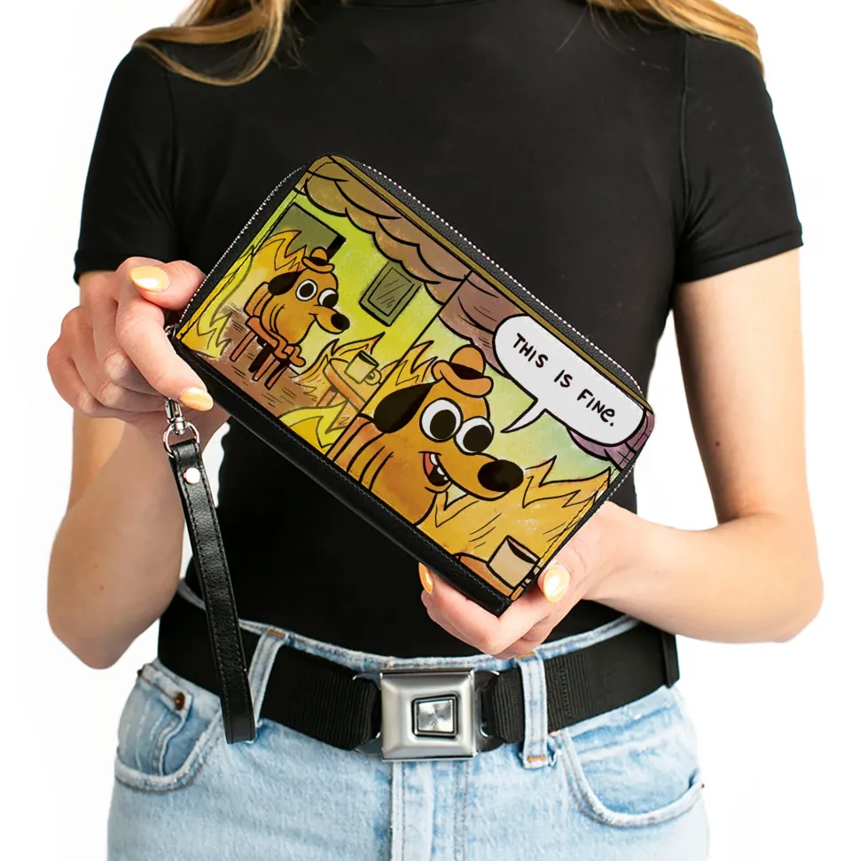 PU Zip Around Wallet Rectangle – THIS IS FINE Question Hound Cafe Fire Comic Strip Blocks