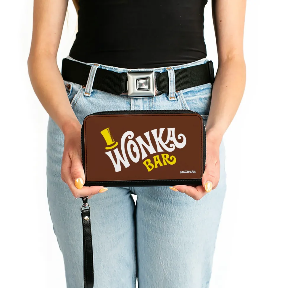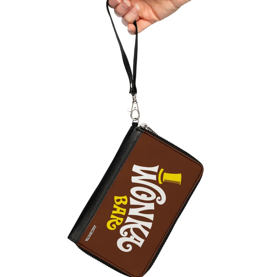 PU Zip Around Wallet Rectangle – Willy Wonka and the Chocolate Factory WONKA BAR Logo Brown Yellow White