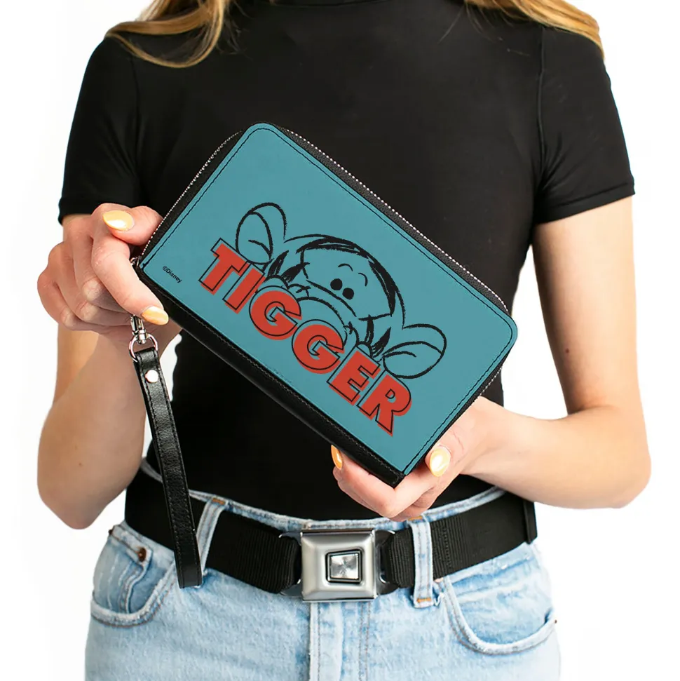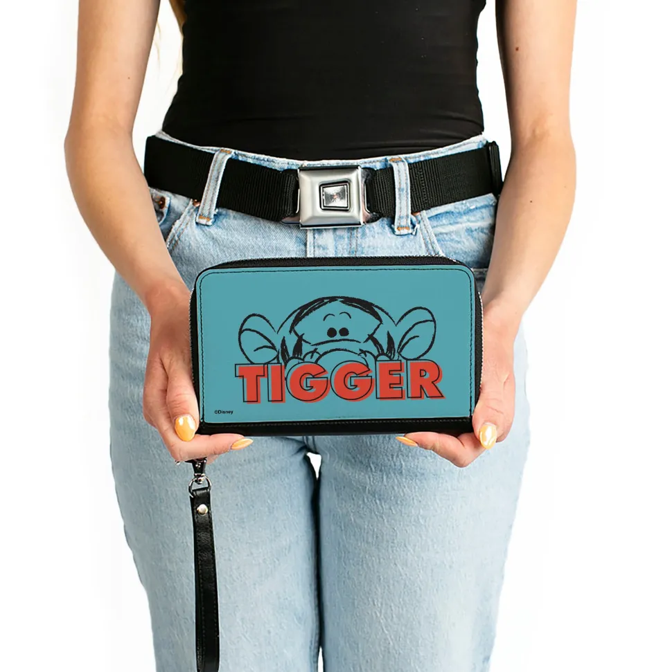 PU Zip Around Wallet Rectangle – Winnie the Pooh TIGGER Peek Pose Blue/Red/Black