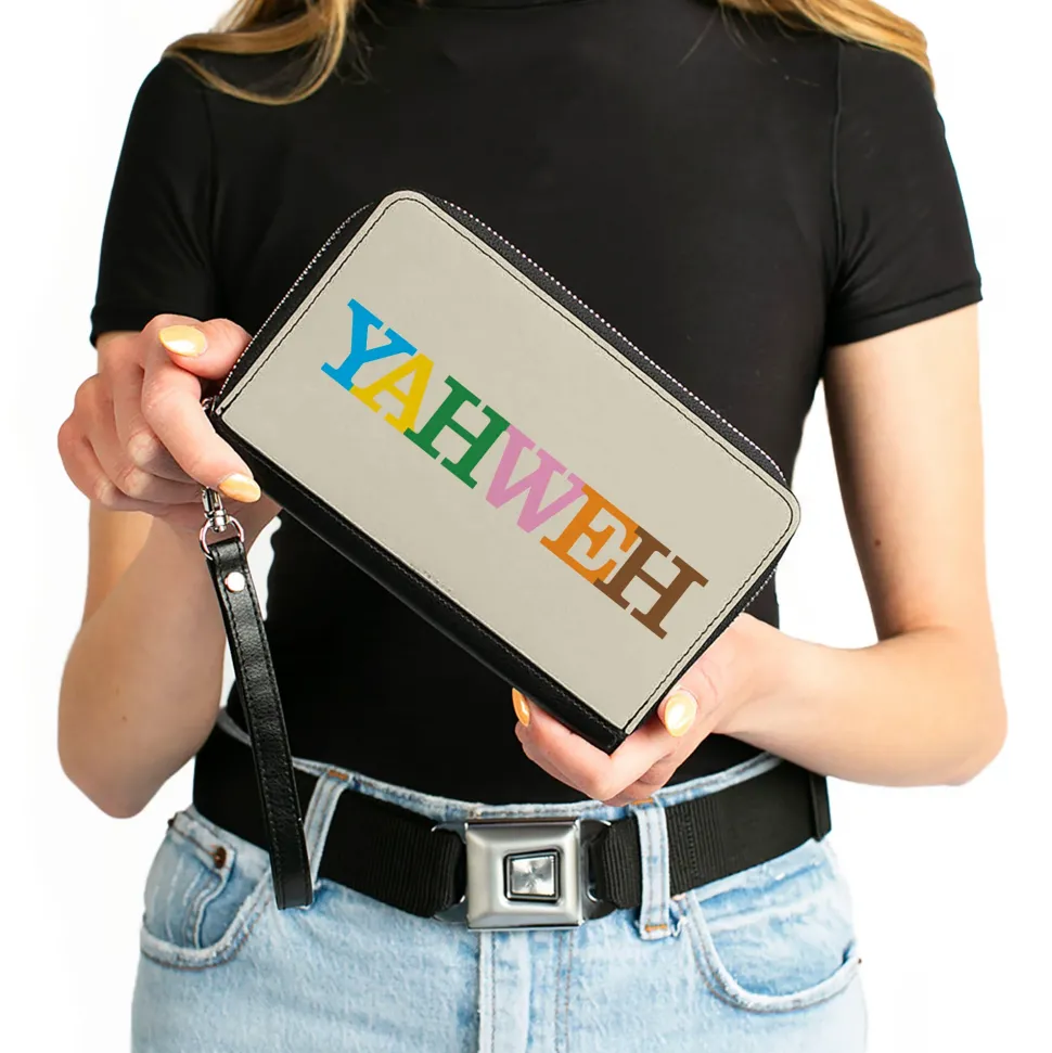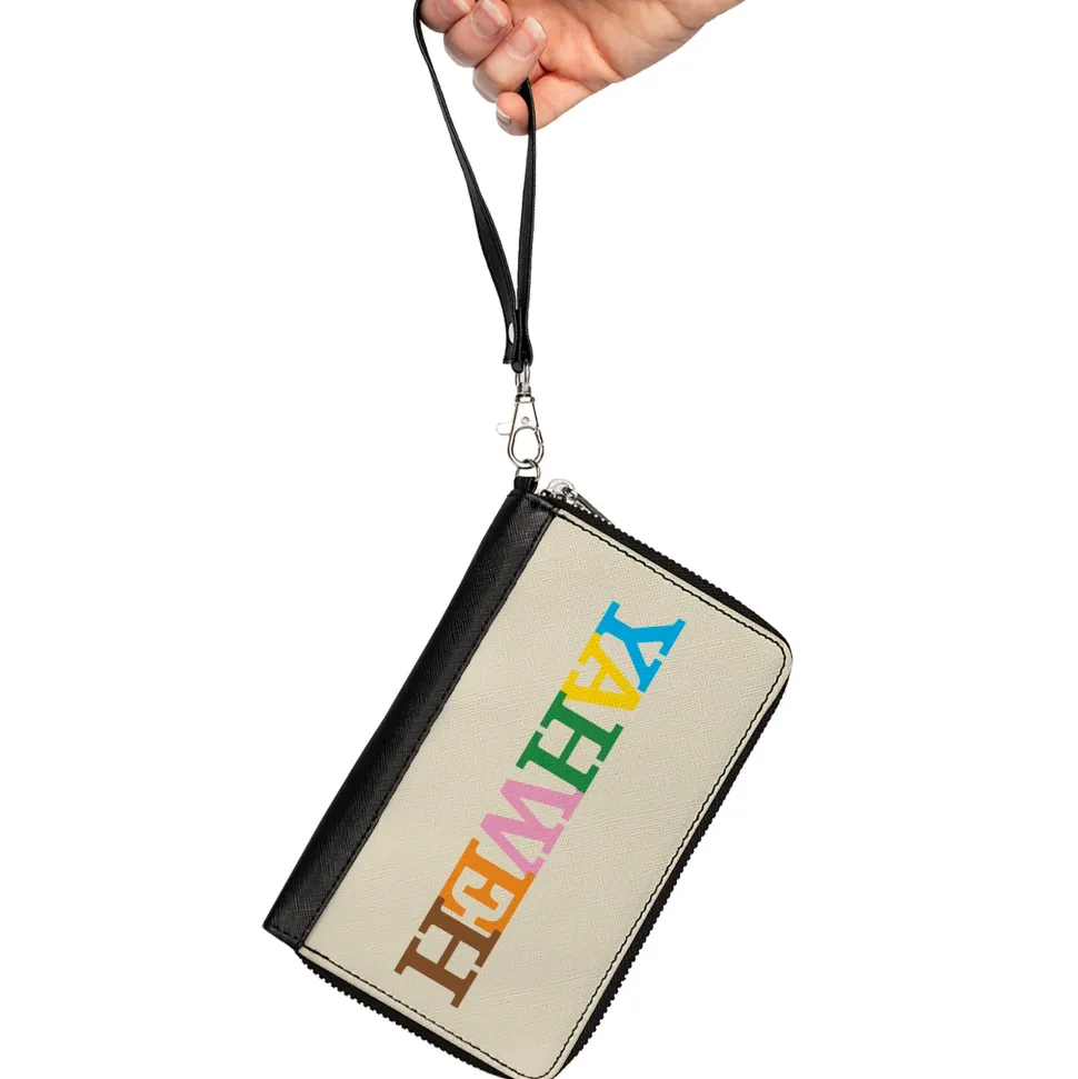 PU Zip Around Wallet Rectangle – YAHWEH Text Beige Multi Color