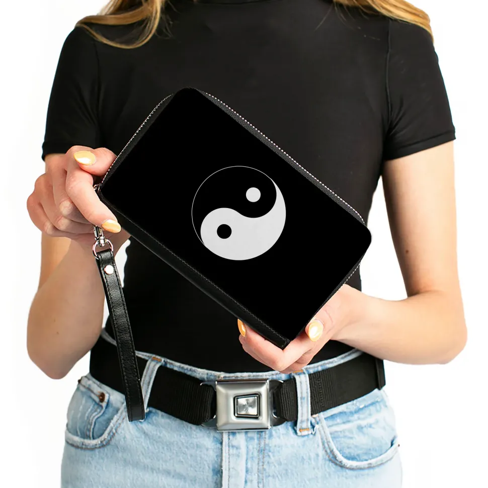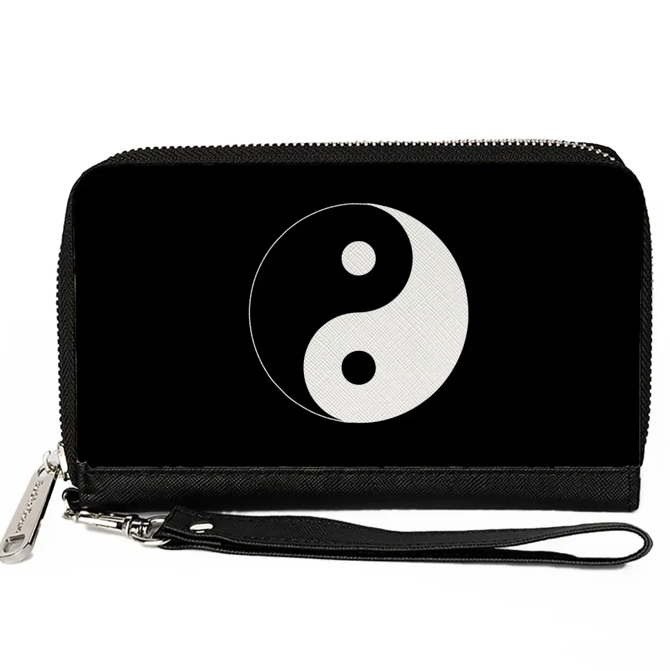 PU Zip Around Wallet Rectangle – Yin Yang Symbol Black/White