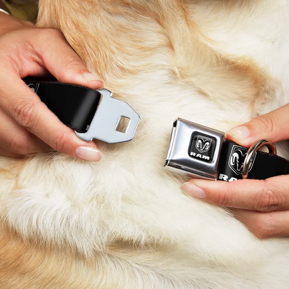 Your dog will be the talk of the town when people notice they’re wearing this awesome SeatBelt Dog Collar! Made from high-density polyester and durable steel components, this collar is built to last. It features beautiful vibrant artwork. The buckle is a miniature authentic SeatBelt Buckle, so you press the center button to release the clasp. This product is Made in USA by Buckle-Down Inc. and officially licensed by Dodge.