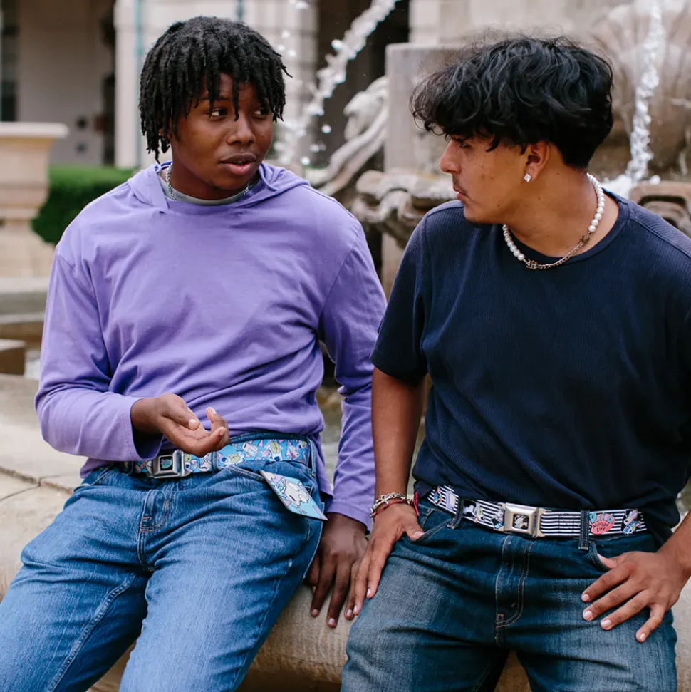 Rocko & Spunky Pose Full Color Black Seatbelt Belt – ROCKO'S MODERN LIFE Rocko & Spunky Poses/TV Stripe Black/White Webbing