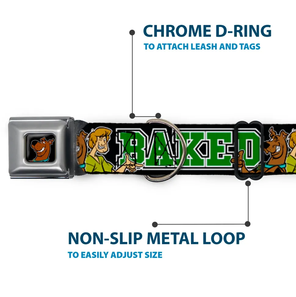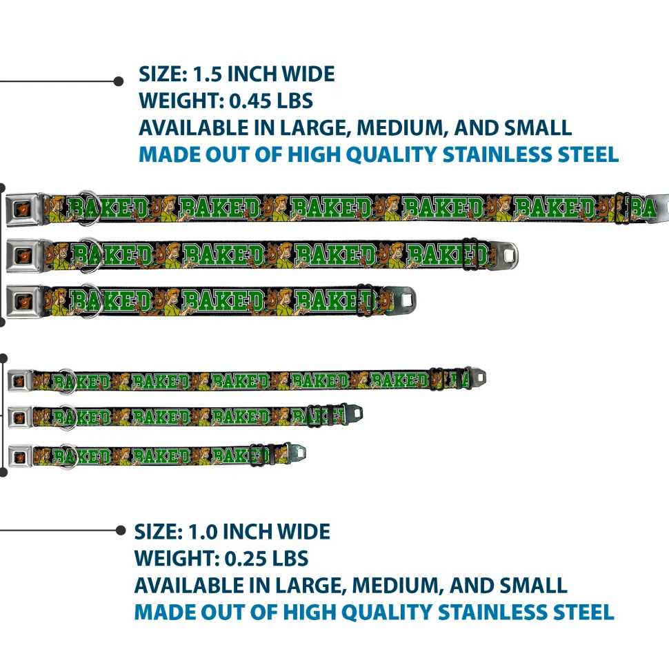 Your dog will be the talk of the town when people notice they’re wearing this awesome SeatBelt Dog Collar! Made from high-density polyester and durable steel components, this collar is built to last. It features beautiful vibrant artwork. The buckle is a miniature authentic SeatBelt Buckle, so you press the center button to release the clasp. This product is Made in USA by Buckle-Down Inc. and officially licensed by Scooby Doo.