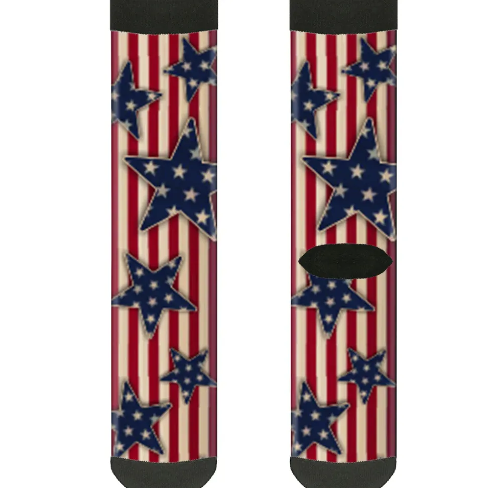 Sock Pair - Polyester - Americana Stars & Stripes Red White Blue White - CREW