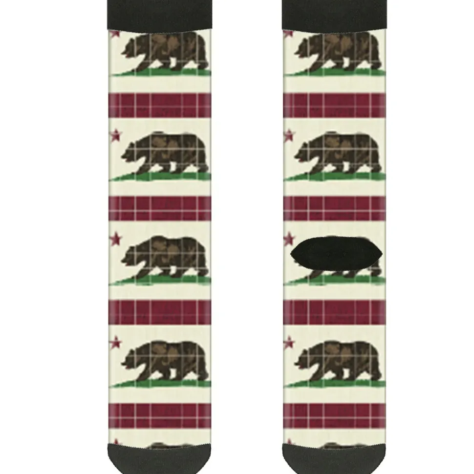 Sock Pair – Polyester – California Flag Bear Weathered White – CREW